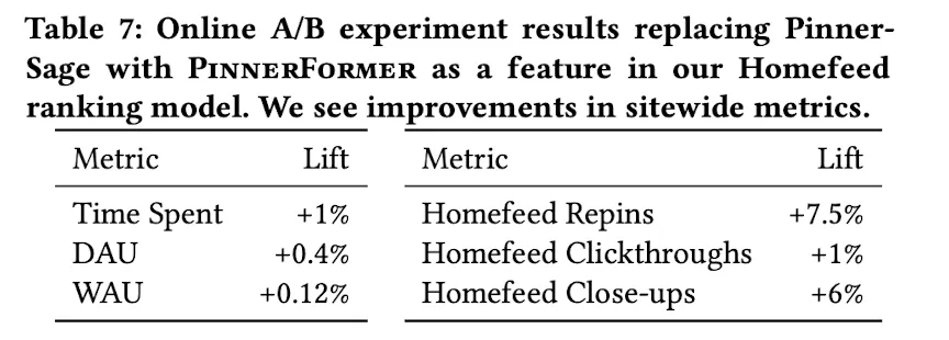 PinnerFormer는 2021년 봄에 Pinterest에 실제로 배포되었으며 아래는 디테일에 대한 설명임.
