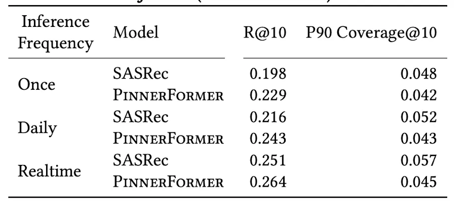 PinnerFormer는 Daily Batch 모델임에도 불구하고, Ranker A/B Task에서 더 좋은 성능을 보인다.