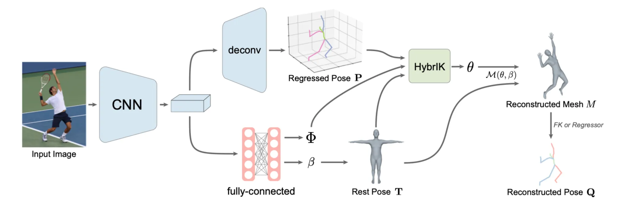 Pose () : HybrIK으로 얻어진 와 비교함