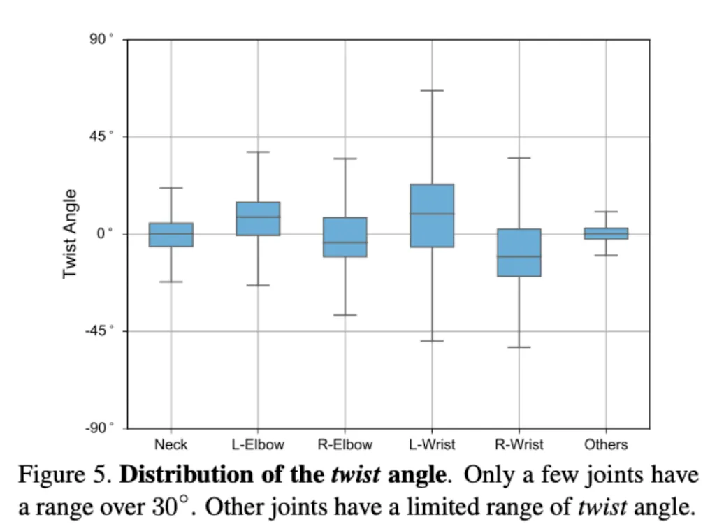 물리적 제한 때문에, Neck, Elbow, Wrist 을 제외하곤 30도 이내임을 볼 수 있다.