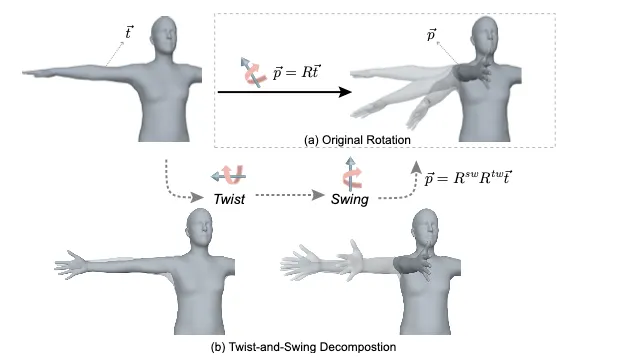 HybrIK에선 Relative Rotation을 Twist, Swing 으로 분해해서 모델링한다.