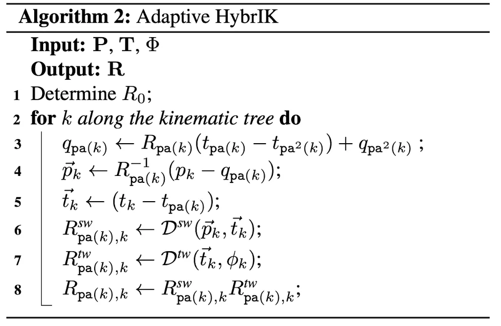 상술한 두 Method의 장점은 살리고, 단점을 보완하기 위한 hybrid inverse kinematics solution (HybrIK)을 제시한다.
