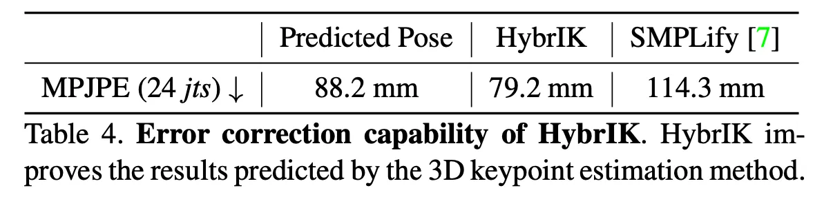 이 부분은 Unrealistic한 Pose를 보정해줄 수 있는 HybrIK 능력 덕분으로 추정됨