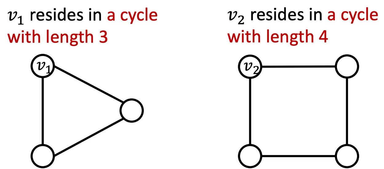(2) 다른 이웃구조를 가지고 있는 Node는 다른 Embedding을 가져야 한다는 여태 나온 GNN으로 항상 성공할 수 없는 조건이다. Message Passing GNN은 Cycle Count를 전해줄 수 없으므로 아래 예시에서 실패하며, Symetric한 구조에서도 실패한다.