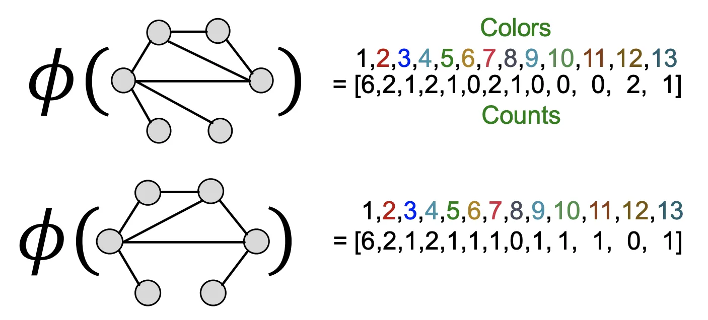 Color Refinement가 끝나면 WL Kernel이 각 Color가 등장했던 횟수를 세서 Summary한다.