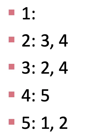 Graph가 크고, Sparse할 경우에 사용하기 좋다. 각 Node의 이웃의 목록 형식으로 표현하는 방식이다.