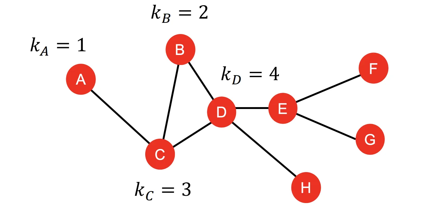 Node 의 Degree를 라고 정의하자. 이때 는 가 갖고있는 Edge(Link)의 수와 같다.