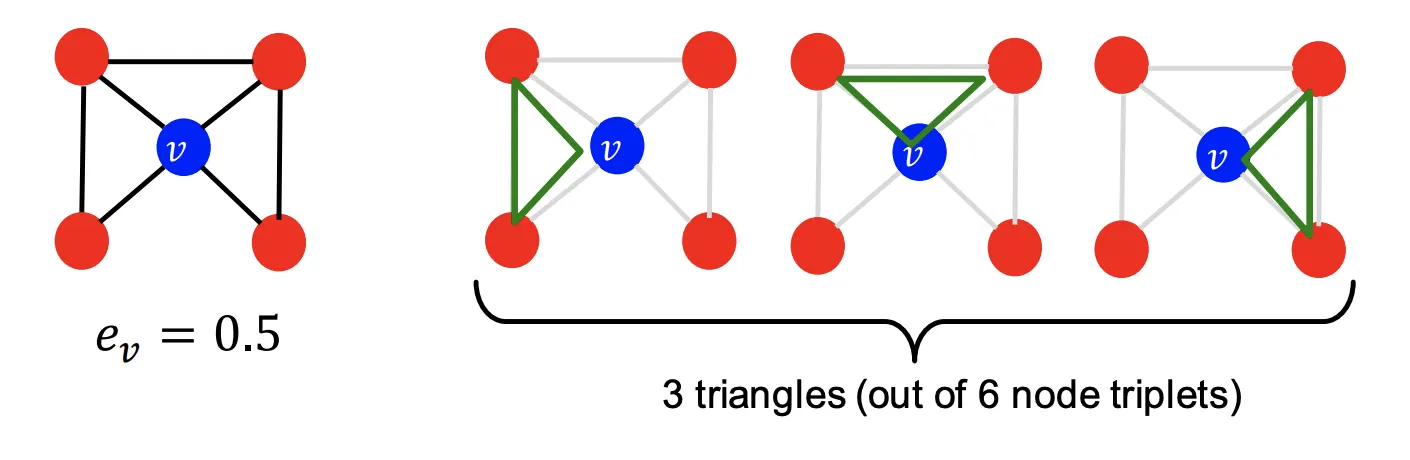 Clustering Coefficient는 Node 의 이웃들이 얼마나 연결되어 있는지를 측정하는 개념이다.