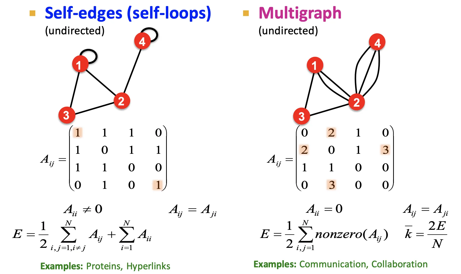 Self-Loop나 Node간의 중복된 Link를 허용하는 Graph도 Adjacency Matrix에 포함시킬 수있다.