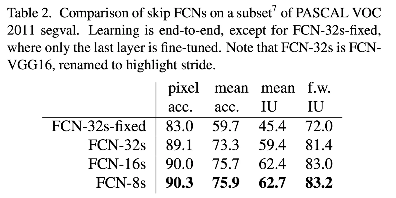 일반적인 Backbone의 경우 입력 Image의 Resolution과 마지막 Feature Map의 Resolution이 32배 차이가난다. 따라서 위의 구조를 32 Pixel stride라고 정의하고 FCN-32s라고 명명한다.