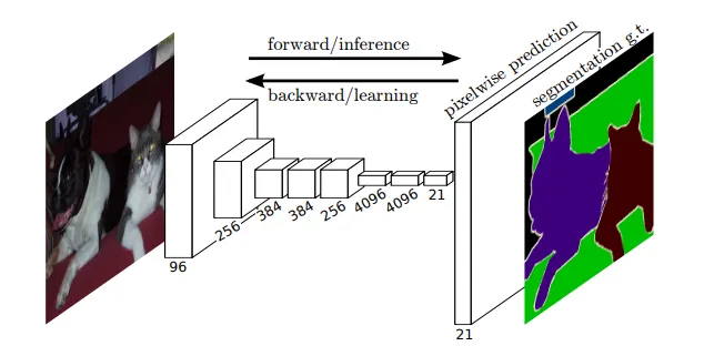 FCN이 발표될 당시 기존 Classification Backbone(AlexNet 등..)은 마지막에 Fully-Connected Layer가 붙어있었다. 이런 구조는 Convolution으로 얻어낸 (1) Spatial Coordinate Feature를 날리는 동시에 (2) 모델로 하여금 고정된 Input-Size를 갖게 만드는 단점이 있었다. (Fully-Connected로 들어가는 Flatten된 Feature의 크기가 일정해야하므로)