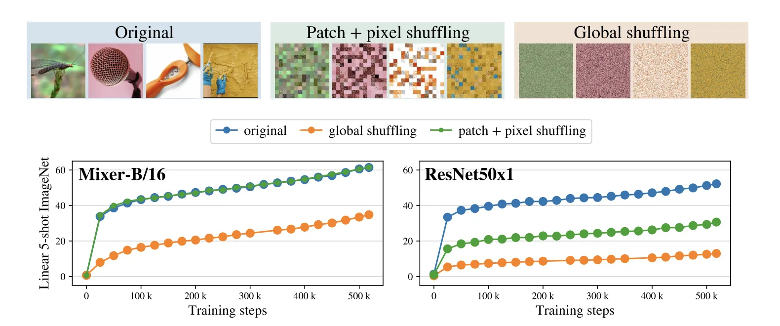 Mixer와 CNN간의 Inductive Bias 차이를 연구하기위해 Input Permutation에 대한 실험을 진행했다.