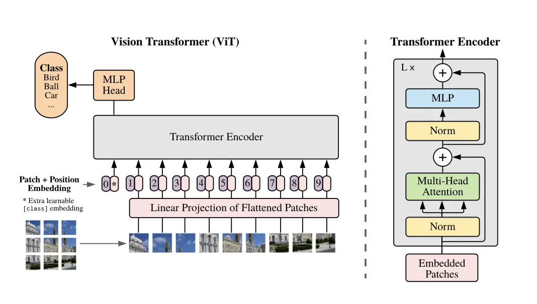 BERT의 [CLS] 처럼, 학습가능한 Patch Sequence의 Embedding인 [class] 를 사용한다.
