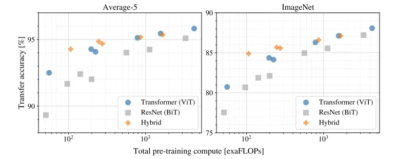 Hybrid는 Cost Budget이 작을때, ViT를 조금 능가하지만 큰 모델에선 차이가 없다.